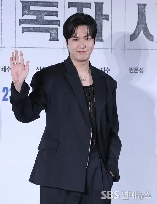Actor Lee Min-ho was spotted at the press conference for the movie 'Omniscient Reader: The Prophet' held on the morning of the 17th at Lotte Cinema near Konkuk University in Gwangjin-gu, Seoul, participating in a photo session.