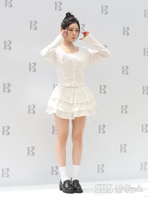KYUJIN of the group NMIXX was spotted striking a pose at a fashion brand photowall event held in Seongsu-dong, Seongdong-gu, Seoul, on the morning of the 19th.