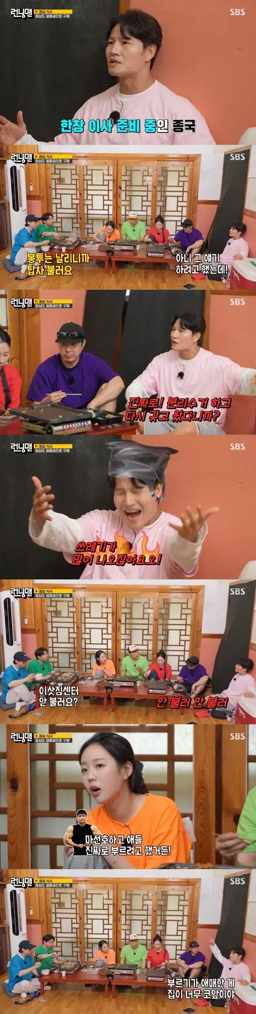 At that moment, Yoo Jae-suk advised, "The plastic bag is flying, so call the moving center," to which Kim Jong-kook responded, "That's what I was about to say. I'm running out of plastic bags for the move," earning some playful scolding from the members.