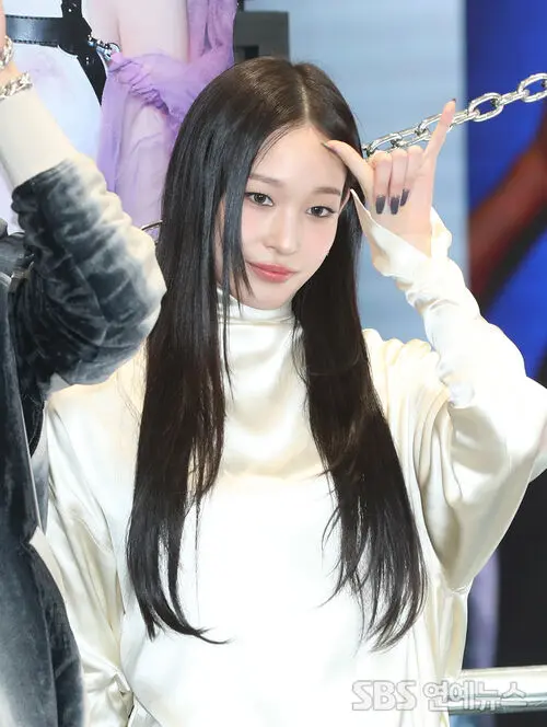 ANNIE from the group ALLDAY PROJECT poses at the photo wall event commemorating the opening of a pop-up store held at LG U+ in Gangnam-gu, Seoul on the afternoon of June 23.