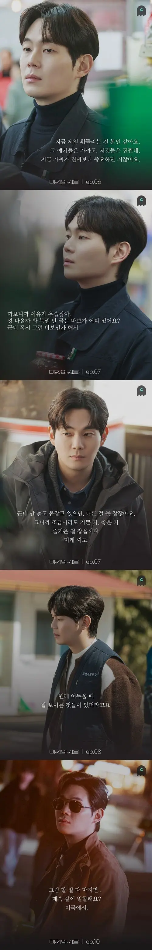 # Episode 10 "Once we're done here... do you want to keep working together? In the US?" Se-jin, who introduced Mi-rae to a new world beyond her lonely existence in Seoul, reached out with a proposal more earnest than ever to work together in the US after wrapping up their current project. Given Mi-rae's prior interest in activist funds, Se-jin's sincere consideration for her future won over the audience.