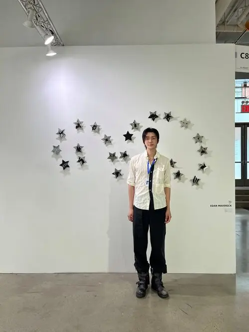 At the fair, Edan Maverick unveiled its new piece 'United.' From afar, 'United' appears as a single star, but up close, it reveals 22 stars connected linearly, each with its own story and visual narrative, conveying messages of diversity and inclusivity. This structure captivated local attendees and gallery representatives alike.