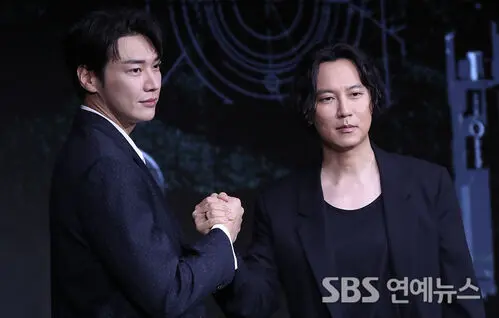 Actors Kim Youngkwang (left) and Kim Nam-gil were spotted at a photo session this morning at the Hotel Naru Seoul MGallery in Mapo District, Seoul, attending the press conference for the Netflix series 'Trigger'.