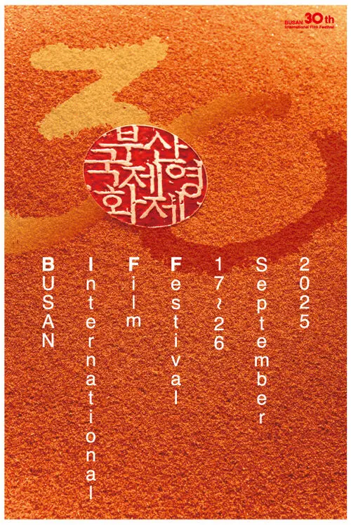 Additionally, the number '30' written in calligraphy adds a powerful touch, encapsulating the festival's accumulated history. The combination of the seal on the red sand texture, the elegant brush strokes of '30', and the text placed above it, blends tradition with a modern sensibility, creating a harmonious aesthetic. The poster design, which visually represents the 30-year journey and the new leap forward of the Busan International Film Festival, was planned and designed by the festival's art director, Choi Soon-dae.