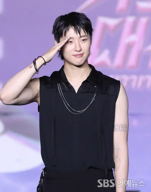 Singer WOODZ was spotted at the '2025 SBS Music Festival Summer' blue carpet event on the afternoon of July 27th in Goyang, Gyeonggi Province, striking a pose with his newly returned, sharp look.