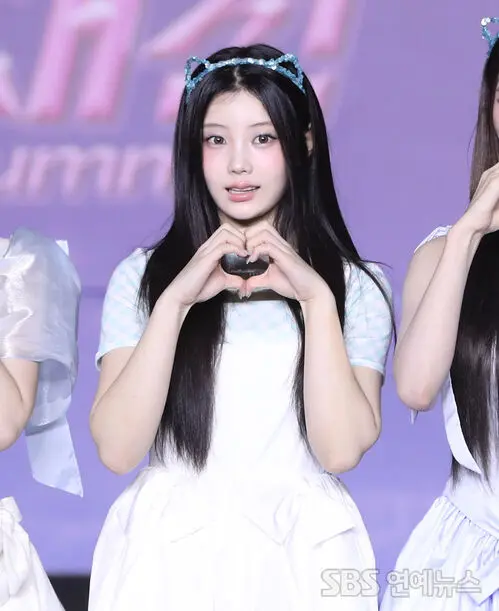 ILLIT's Wonhee was spotted striking a pose at the '2025 SBS Music Festival Summer' blue carpet event held in the afternoon of July 27th in Goyang, Gyeonggi Province.