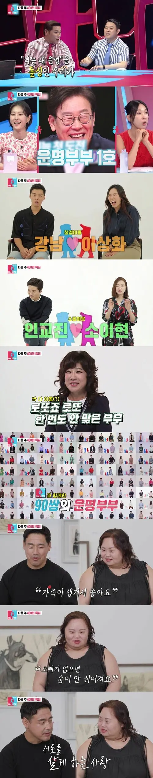 The episode featured the 20th anniversary of the voice actor couple Jung Hyung-seok and Park Ji-yoon, and the story of Lady Jane and Lim Hyun-tae, who recently welcomed healthy twin daughters. The end of the broadcast teased the upcoming 400th episode special, drawing attention. The preview showcased the chemistry of MCs Kim Gura and Seo Jang-hoon, who have been dazzling viewers for eight years, along with a look back at the "fate couples" who have graced "Same Bed, Different Dreams 2: You Are My Destiny" over the past eight years. From the first "fate couple" Lee Jae-myung and Kim Hye-kyung to Choo Ja-hyun and Woo Hyo-kwang, Kangnam and Lee Sang-hwa, In Gyo-jin and So Yi-hyun, and No Sa-yeon and Lee Moo-song, the preview brought back fond memories of the 90 couples who have appeared on the show.