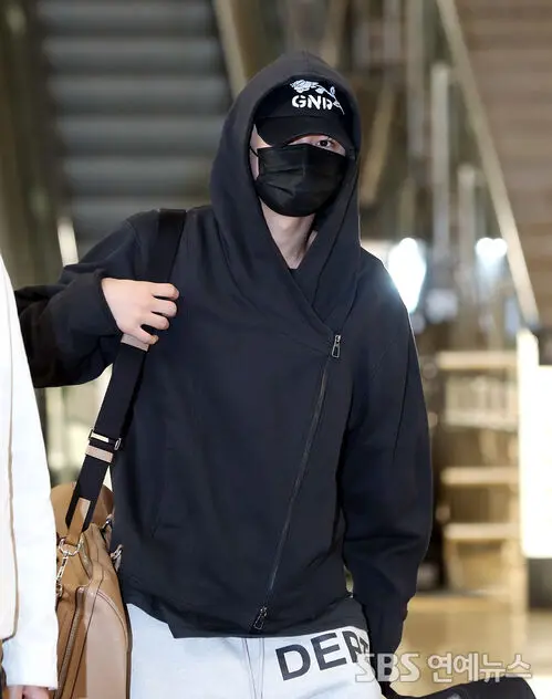 [E-Photo] ENHYPEN's JAY Rocks Black Hoodie and Shorts for Airport Fashion
