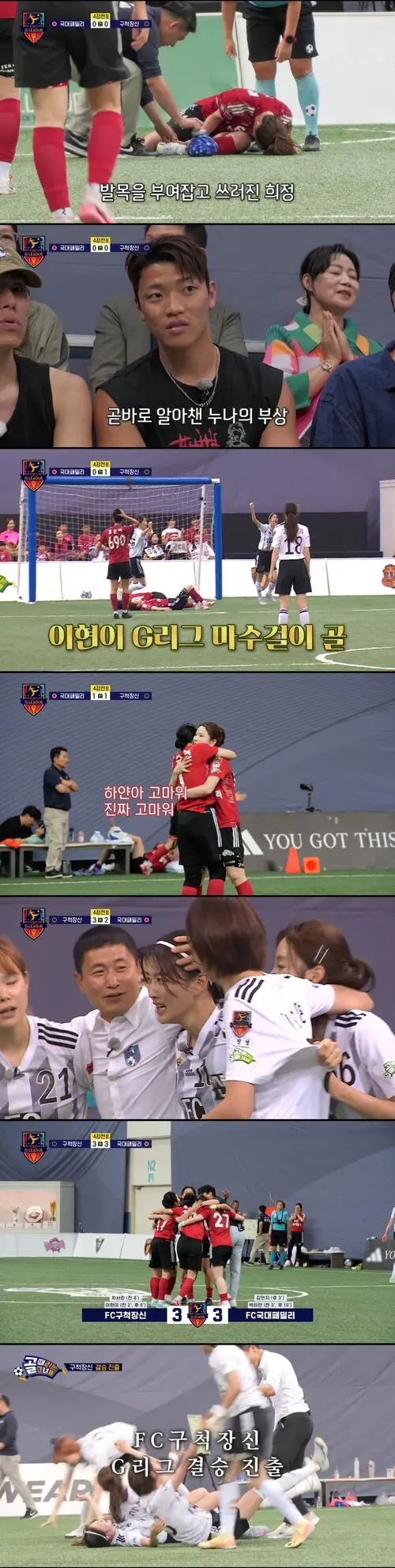 Despite the pain, Kim Soo-yeon bravely continued, guarding the goalpost. Park Ha-yan then scored an equalizer, bringing the game back to life.