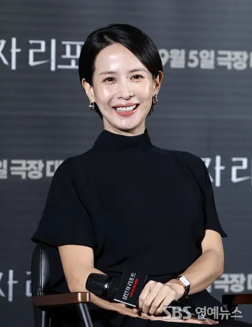 Actress Cho Yeojeong attended the press conference for the movie 'Murderer Report' on the morning of August 12th at CGV Yongsan I'Park Mall in Yongsan-gu, Seoul, where she engaged in a talk session.