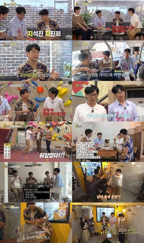 In the episode, the two MCs, Yoo Jae-suk and Yoo Yeon-seok, joined 'Gap Friends' Ji Jin-hee and Ji Suk-jin in Ah-hyeon-dong, unleashing a non-stop laughter virus.