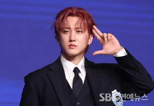 CHANGBIN of Stray Kids hit the photo call at Conrad Seoul in Yeongdeungpo-gu on Aug. 22, attending a press conference celebrating the release of the group's fourth studio album, "KARMA."