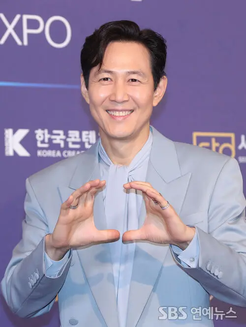 Actor Lee Jung-jae hit the 2025 NEWSIS Hallyu Expo photo call at Lotte Hotel in Jung-gu, Seoul, on Aug. 28, striking poses and flashing playful heart hands for the cameras.