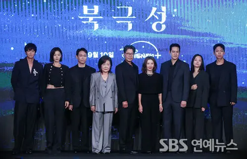 The star-studded cast of Disney+ drama "Tempest" ― Gang Dong-won, Jun Ji-hyun, Oh Jung-se, Kim Hae-sook, Yoo Jae-myung, Lee Mi-sook, Park Hae-joon, Lee Sang-hee and Joo Jong-hyuk ― posed for a photo call at the series’ press conference at the Four Seasons Hotel Seoul on the morning of Sept. 2. (SBS Entertainment News | Baik Seung-Chul)