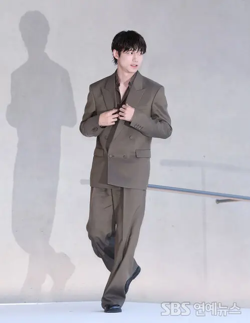 Japanese actor Kentaro Sakaguchi turned heads in a sharp brown suit as he attended the HAUS NOWHERE Seoul opening in Seongsu-dong on the afternoon of Sept. 3.