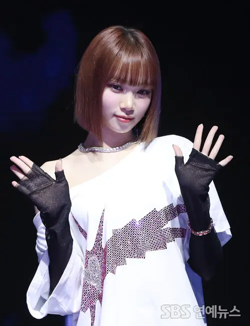 KIM CHAEWON of LE SSERAFIM hit the photo line on Aug. 29 at Yes24 Live Hall in Seoul’s Gwangjin District during a media showcase celebrating the group’s fourth mini-album, “CRAZY.” She showed off a sleek bob and cool, chic energy as she posed for photographers.