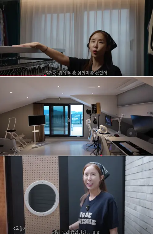 The biggest showstopper? A “hidden room” turned private singing booth. “We built a singing room at home―come over and have fun anytime,” she said. “With headphones on, only I can hear my vocals and the track. One button, and nothing leaks outside.” She teased, “Now that we’ve got this, maybe I’ll upload a few songs from in here.”