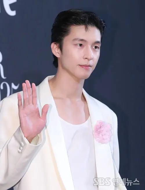 Actor Hong Kyung attended the 2025 Asia Star Awards photo call at Paradise Hotel in Busan’s Haeundae District on Sept. 18, bringing a pop of pink as he struck confident poses.