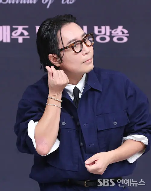 Singer-composer Jung Jae-hyung hit the press line at SBS in Mok-dong, Seoul, on the morning of Sept. 23, posing for photos at the network’s launch event for its new variety series “The Ballad of Us.”