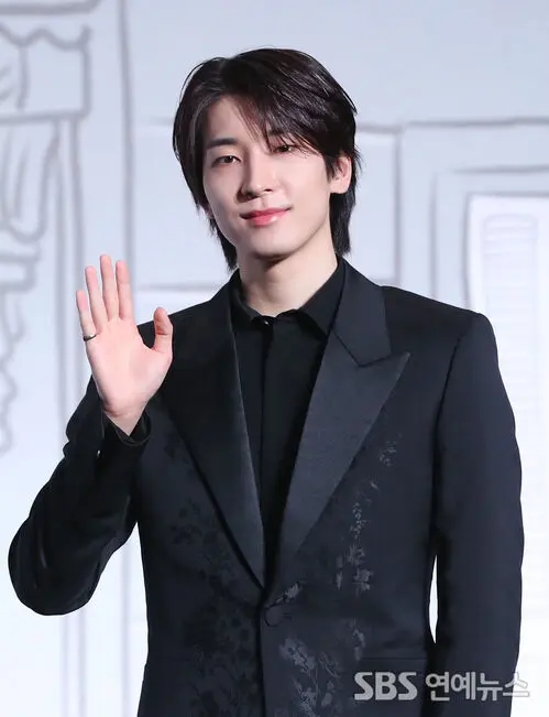 SEVENTEEN's WONWOO posed for photos at a press conference celebrating the release of the group's new album '17 IS RIGHT HERE,' held April 29 at Conrad Seoul in the city's Yeongdeungpo District. With a soft smile, he brought an easy, warm vibe to the photo call.