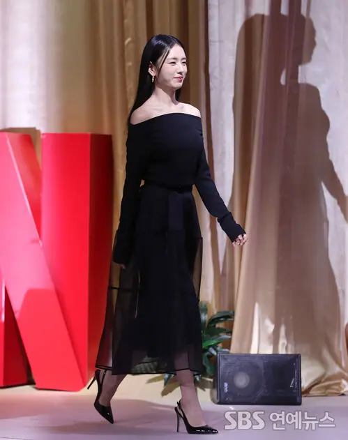 Actress Ahn Eun-jin turned heads in an elegant all-black look on Sept. 29 at Josun Palace Seoul Gangnam, posing on the photo line at the press event for Netflix's new series 'Genie, Make A Wish'.