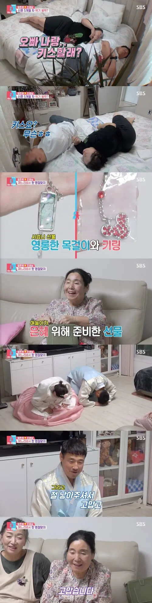Dressed in elegant hanbok, the couple offered deep bows to their parents. Fighting back tears, Cho told his mother, “Please stay healthy. Thank you for giving birth to me,” moving her to the verge of sobbing.