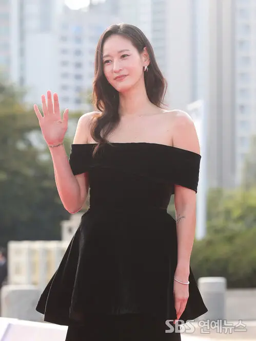 Rie Young Zin hit the red carpet at the 20th Seoul International Drama Awards at KBS Hall in Yeouido, Seoul, on Oct. 2, swapping a uniform look for an elegant, head-turning gown.