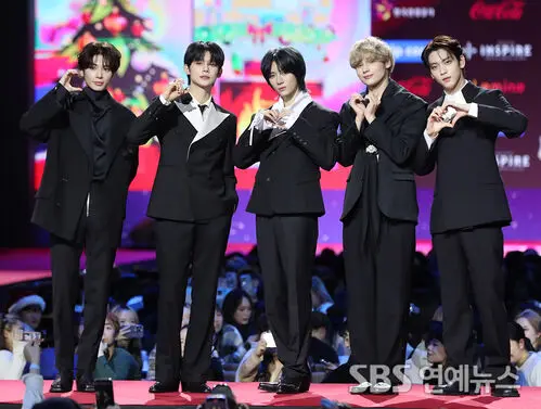 TOMORROW X TOGETHER (TXT) lit up the red carpet at the 2023 SBS Music Awards at Inspire Arena in Incheon on Dec. 25, striking poses for the cameras and flashing heart-hands with plenty of charisma.