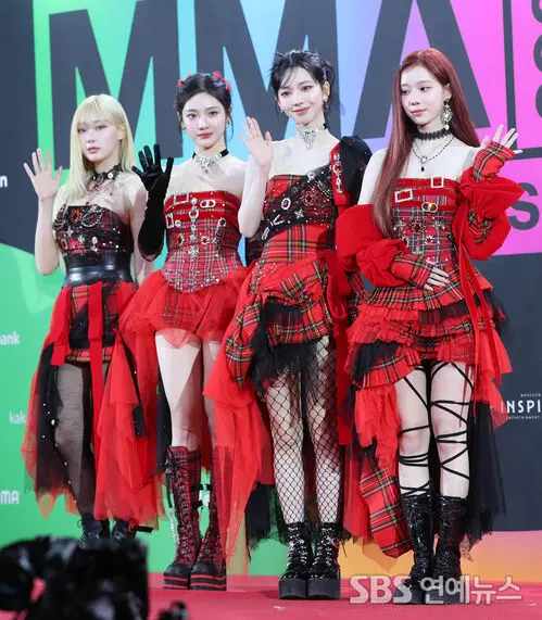 aespa turned heads on Dec. 2 at the 2023 Melon Music Awards (MMA) red carpet, held at Inspire Arena in Incheon, serving bold holiday-red glam and striking festive poses.