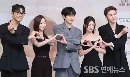 From left, BAE NARA, Shin Seulki, CHOI WOOSHIK, Jung Somin, and Seo Bum-june hit the photo call at SBS headquarters in Seoul on Oct. 10 to launch the network’s new Friday-Saturday series 'Would You Marry Me?'