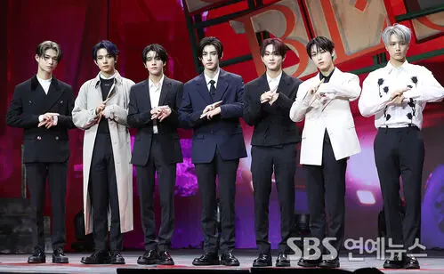 ENHYPEN hit the photo line at a media showcase celebrating the release of their fifth mini album, 'ORANGE BLOOD,' held Nov. 16 at Yes24 Live Hall in Seoul.