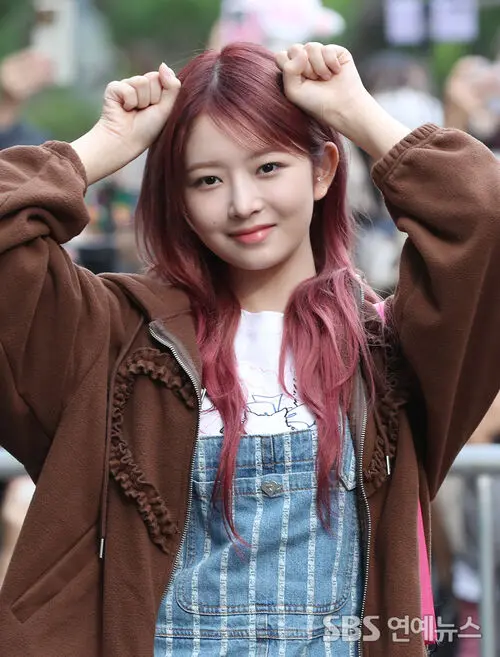 REI of IVE struck a playful pose as she headed into KBS in Yeouido, Seoul, for a morning music show rehearsal on Oct. 13.