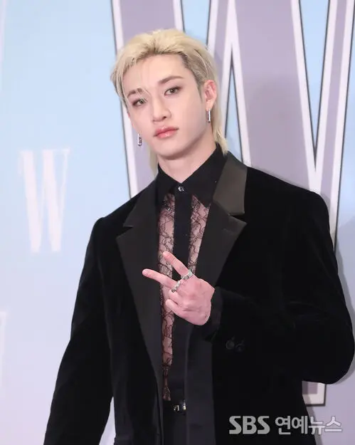 Stray Kids’ BANG CHAN hit the step-and-repeat at a Breast Cancer Awareness campaign photo call at the Four Seasons Hotel Seoul in Jongno-gu on Oct. 15, flashing a peace sign with plenty of swagger.