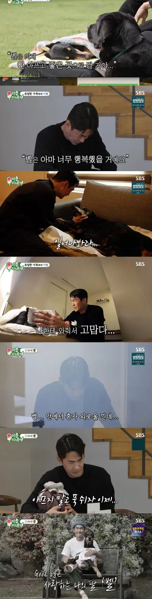 On the Oct. 19 episode of SBS' "My Little Old Boy," viewers watched the model-actor part ways with his beloved dog, Belle.