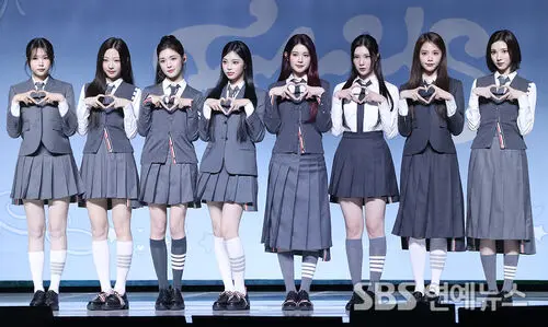 Hearts2Hearts posed for photos at a media showcase celebrating the release of their first mini-album, 'FOCUS,' at Seoul's Blue Square on Oct. 20.
