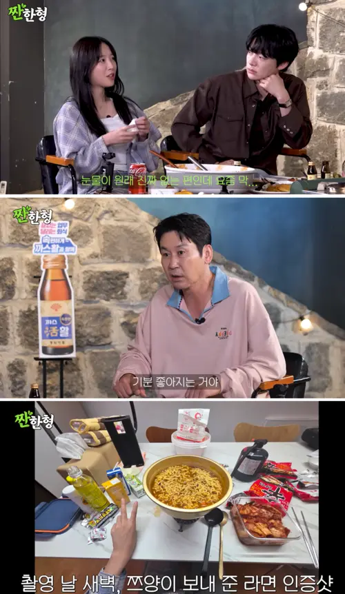 Encouraging her to let it out, Shin shared his own rough patch: “Years ago I got in deep after I lent my name as a guarantor for a business. I’d finish a show and find 300 missed calls. I kept thinking, ‘What am I even doing?’ and I couldn’t focus on work,” he recalled. “Now that I’m older and a bit wiser, I try to look around me. When we see someone eat with genuine joy, it makes us happy too. Because you eat with pure happiness, watching you feels good,” he added, speaking to why viewers connect with Tzuyang.
