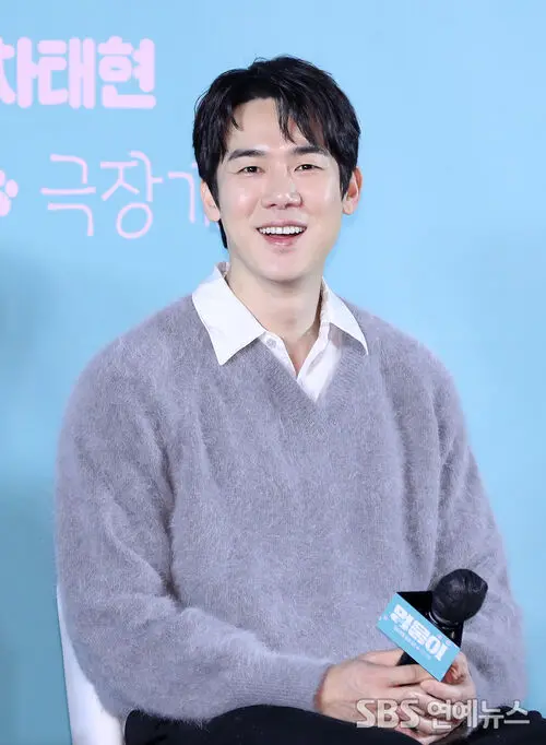 Yoo Yeon-Seok beams with his signature puppy-dog charm at the press conference for the film “My Heart Puppy,” held at Megabox Seongsu in Seoul on Jan. 31, 2023.