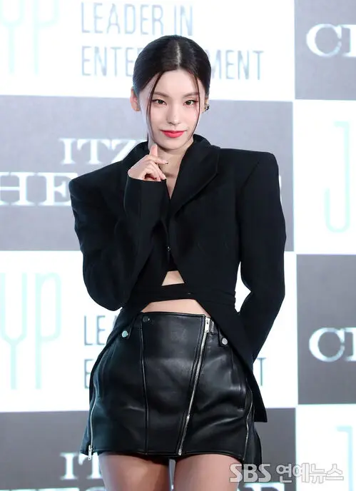 YEJI of ITZY struck a cool, confident heart pose at a press conference held at the Fairmont Ambassador Seoul to celebrate the release of the group’s mini-album 'Cheshire.'
