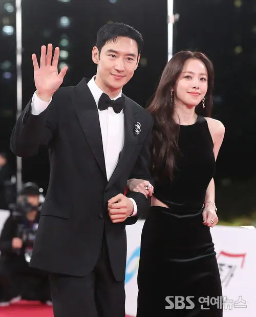 Actors Lee Je-hoon (left) and Han Ji-min hit the red carpet at the 46th Blue Dragon Film Awards at KBS Hall in Yeouido, Seoul, on Nov. 19. The duo, co-hosting this year’s ceremony, drew cheers as they greeted fans and photographers with effortless chemistry.