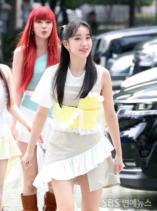 STAYC’s Sumin was spotted on Aug. 4 arriving at the SBS headquarters in Mok-dong, Seoul, for a live appearance on SBS PowerFM’s Cultwo Show.