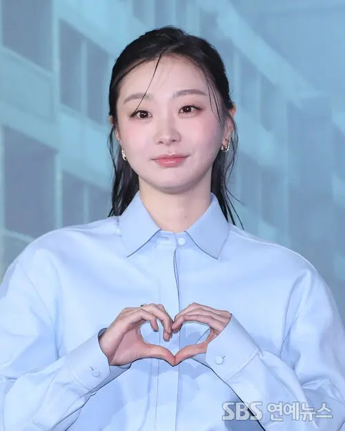 Kim Da Mi lit up a morning press conference for the Netflix film 'The Great Flood' at CGV Yongsan I'Park Mall in Seoul on Dec. 16, flashing a playful heart pose during the photo call.