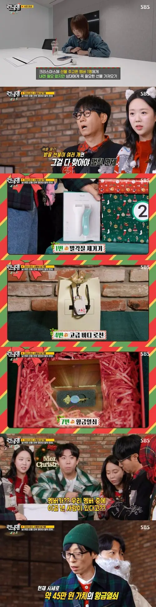 The grab bag ran the gamut, from a foot callus remover and a set of shot glasses to a hair styler, premium body lotion, leopard-print underwear, and even Yeongdeok snow crab―deflating the cast’s excitement.