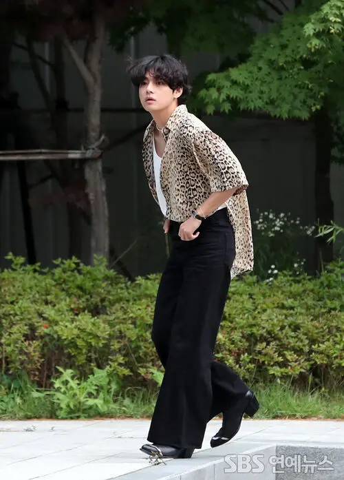 On the morning of June 24, V of BTS arrived at the Seoul Gimpo Business Aviation Center, turning heads in a leopard-print shirt as he made his way to the departure hall for a flight to Paris to attend a fashion show.
