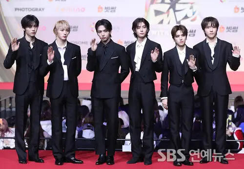 BOYNEXTDOOR hit the red carpet at the 2025 SBS Gayo Daejeon at Inspire Arena in Jung-gu, Incheon, on Dec. 25, striking confident poses for the cameras.