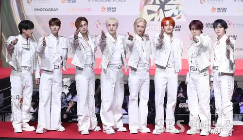 Stray Kids hit the red carpet at the 2025 SBS Gayo Daejeon at Inspire Arena in Incheon on Dec. 25, striking poses for the cameras.