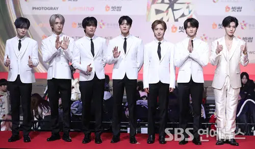 NCT DREAM hit the red carpet at the 2025 SBS Gayo Daejeon at Inspire Arena in Incheon on Dec. 25, striking poses in sleek black-and-white suits.