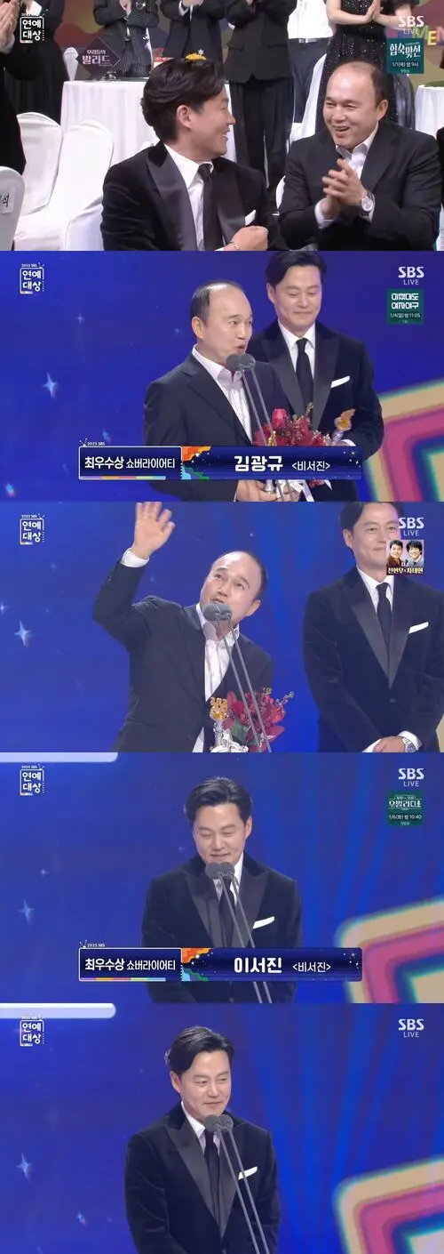 Broadcast live from SBS Prism Tower in Seoul on Dec. 30, the 2025 SBS Entertainment Awards saw the “Manager Seojin” stars Lee Seo-jin and Kim Kwang-kyu share the Top Excellence Award in the Variety/Show category.