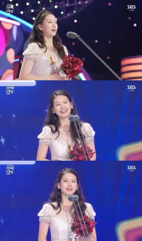At the 2025 SBS Entertainment Awards, broadcast live from SBS Prism Tower in Seoul’s Mapo District at 8:50 p.m. on Dec. 30, "Kick a Goal" stars Kim Jin-kyung and Lee Hyun-yi shared the Female Top Excellence Award.