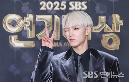 Actor Ha Yujun hit the photo wall at the 2025 SBS Drama Awards at SBS Prism Tower in Seoul on Dec. 31, flashing a playful wink and delivering full blond-prince charm.