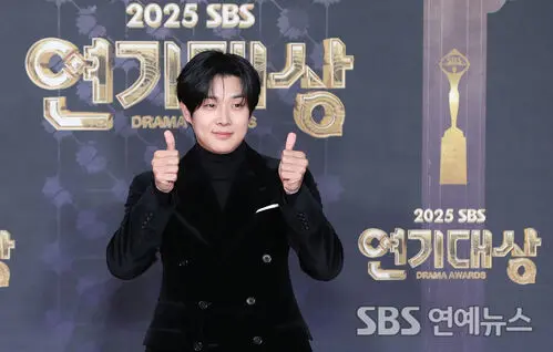 Actor Choi Woo-shik struck confident poses on the photo wall at the 2025 SBS Drama Awards, held Tuesday evening at SBS Prism Tower in Seoul’s Mapo-gu neighborhood.